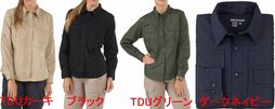 5.11社製の女性用「5.11 Taclite Proシャツ」。 4.4オンス、ウルトラライトウェイト65%ポリエステル、コットン35%リップストップ生地 に汚れが付着しにくいテフロン加工を施す。 胸部に隠しポケットを装備。 肘部の補強や背中のベンチレーション、 トリプルステッチでハードな使用にも耐えるシャツに仕上がっている。